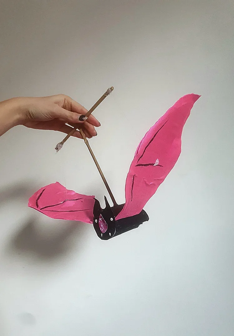 Work through simple to-follow instructions to produce a colourful bat or butterfly puppet in a design of your choice, which you can then operate and fly!